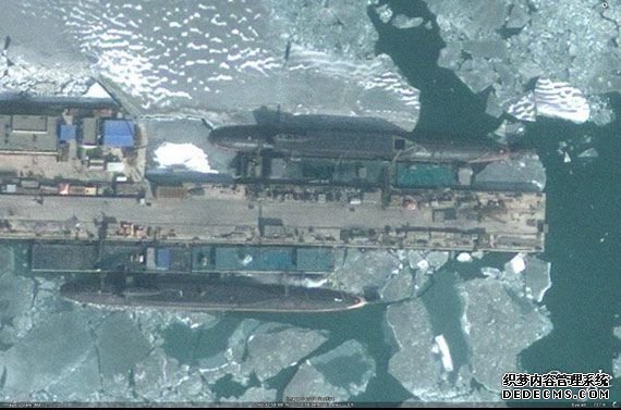 •   资料图:卫星照片显示两艘094型潜艇正静静地停泊在葫芦岛码头。