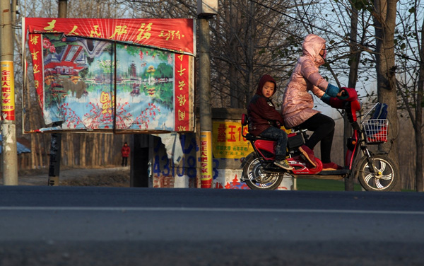 2012年11月27日,河南省周口市淮阳县四通镇民主中小学,学校大门。