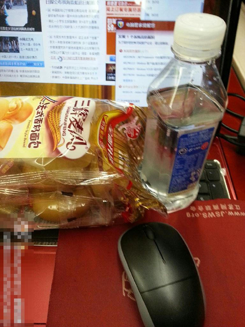 2月17日晚,D3012次动车,即将到达南京,列车给每人发一包面包和一瓶矿泉水。