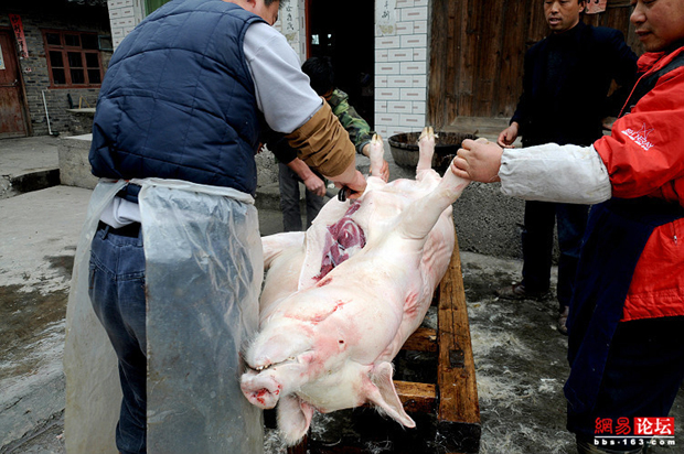 各种农村杀猪场面 看得心惊肉跳(1)(6)