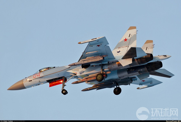 图为苏-35战斗机近期挂载武器进行飞行训练。