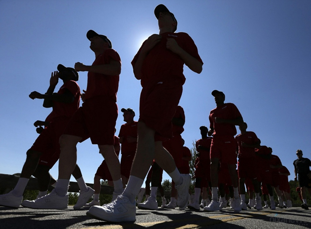 服刑人员跑步,进行体育锻炼。