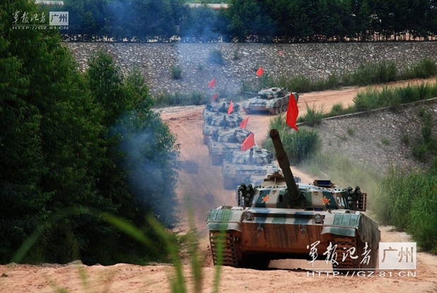 解放军96式主战坦克训练场上高速奔驰(1)(2)