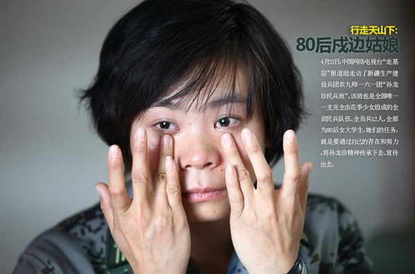4月27日,中国网络电视台“走基层”报道组走访了新疆生产建设兵团农九师一六一团“孙龙珍民兵班”。该班也是全国唯一一支完全由花季少女组成的全训民兵 队伍,全员共12人,全部为80后女大学生,她们的任务,就是要通过自己的存在和努力,将孙龙珍精神传承下去、宣传出去。