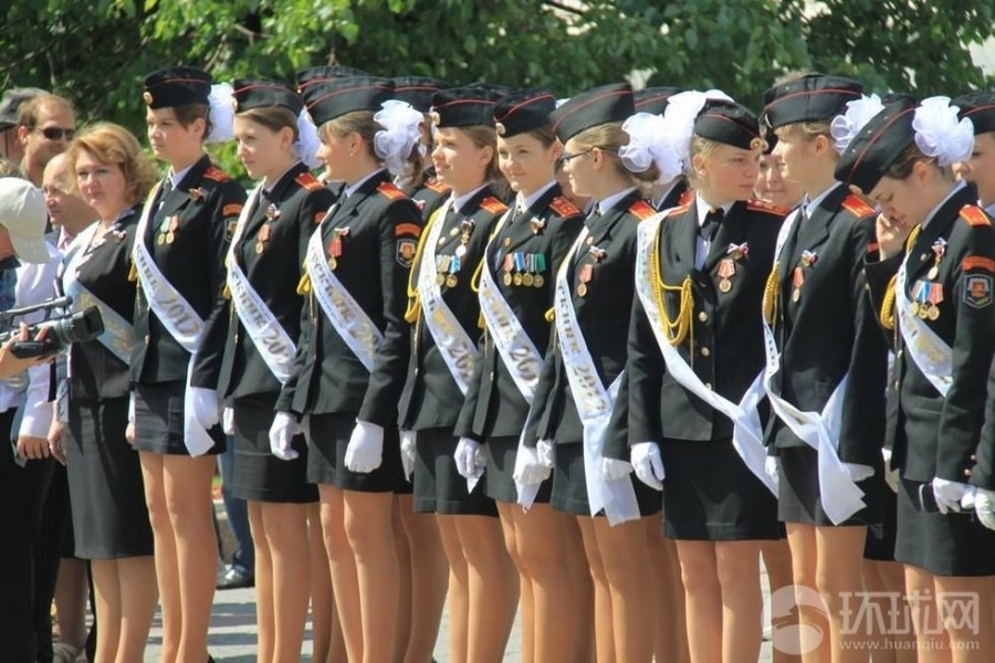 俄美艳军校女生集体亮相合影 一排美腿(1)(2)