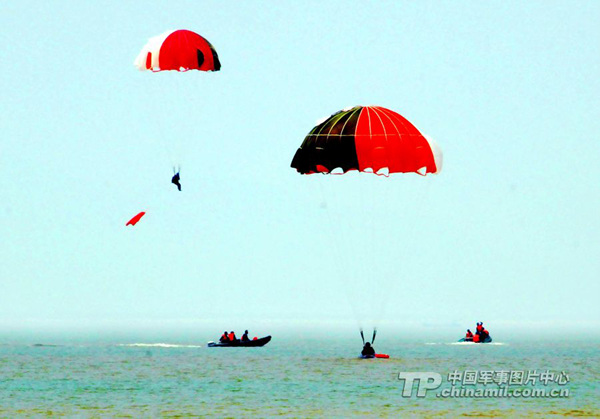 解放军女飞行员组织海上跳水救生训练(1)(6)