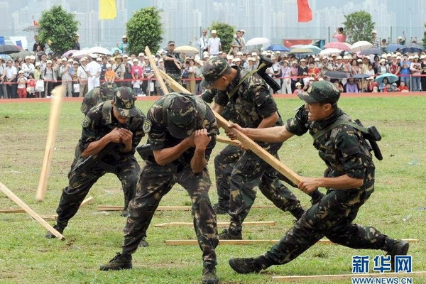 驻港部队军营开放日 女兵表演练割喉(1)(3)