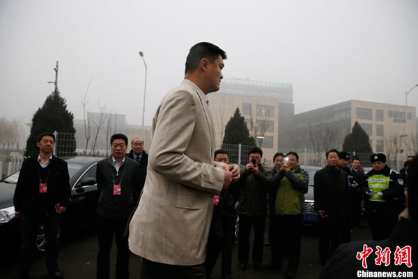 2月28日,全国政协委员姚明在驻地昆泰酒店现身遭“围观”。