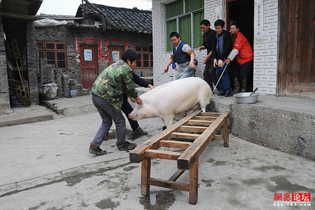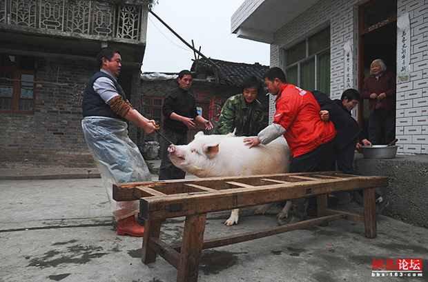 各种农村杀猪场面 看得心惊肉跳(1)(2)