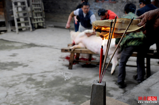 各种农村杀猪场面 看得心惊肉跳(1)(3)