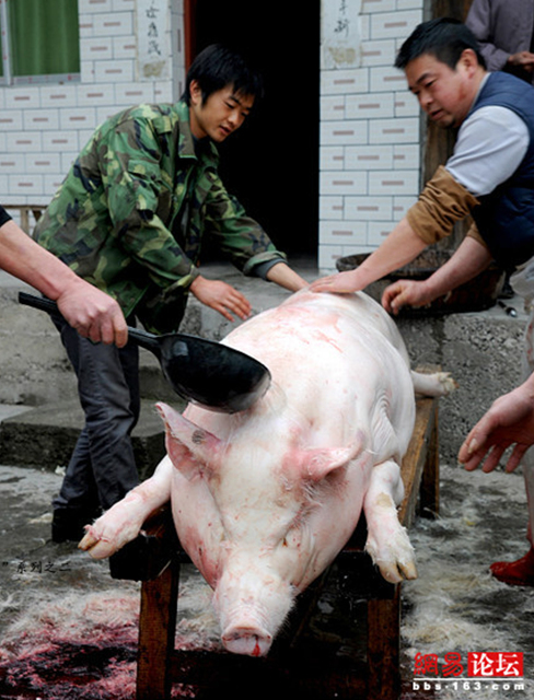 各种农村杀猪场面 看得心惊肉跳(1)(6)