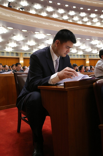 3月3日,中国人民政治协商会议第十二届全国委员会第一次会议在北京人民大会堂开幕。这是全国政协委员姚明在听会。