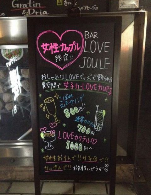 从今去年7月开业以来,“爱的焦耳”酒吧备受日本女性追捧,其中从事日本性产业的女子和AV女优,对它尤其捧场。不过,这家酒吧禁止单身男性进入,如果男人想进来,必须要有女性的陪伴。单身直男们,是不是牙都咬碎了……