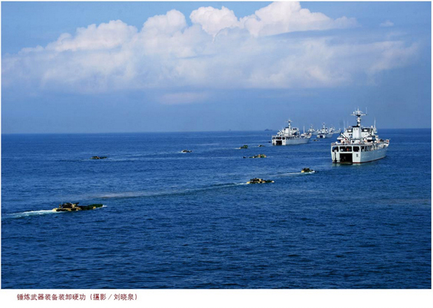 我军登陆舰队赴南海练夺岛作战(1)