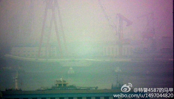 2月26日上午8时30分左右,辽宁舰在大连港的浓雾中慢慢出港。