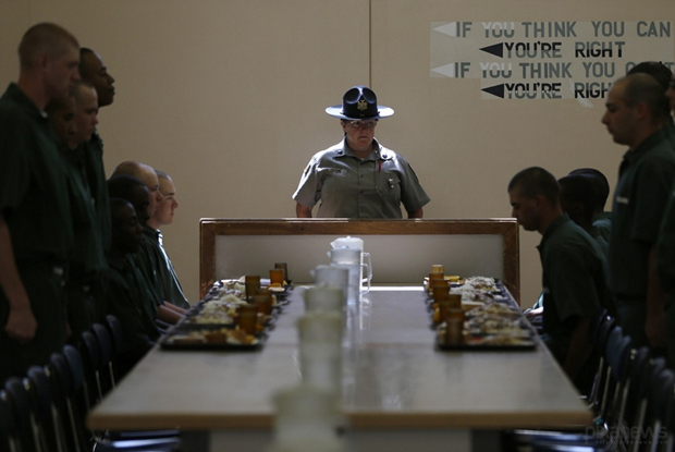 中饭时间,管教员巡查。
