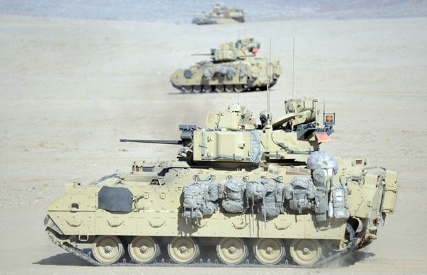 美国陆军M2A3新型战车群戈壁实战演练(1)(5)