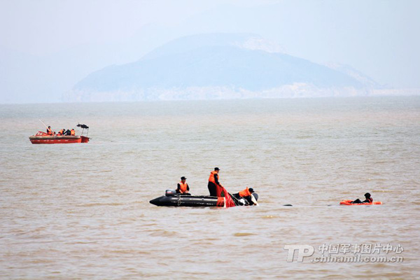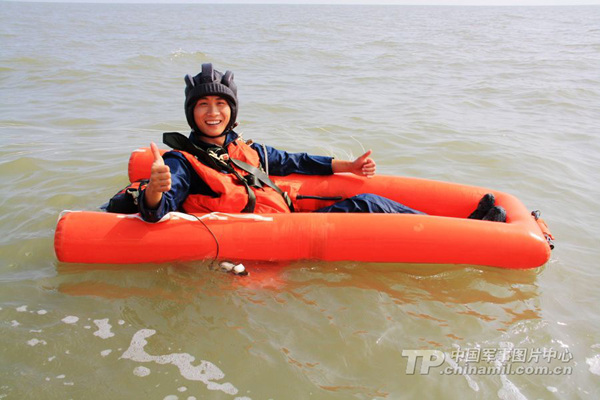 解放军女飞行员组织海上跳水救生训练(1)(5)