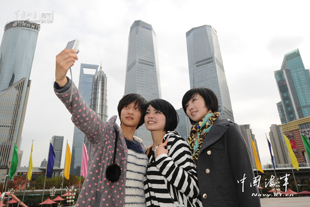 东海舰队某水警区退伍女兵畅游上海
