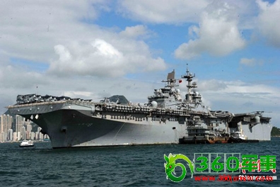 5月25日,美国海军“马金岛号”两栖攻击舰(LHD8)悬挂中国国旗访问香港。